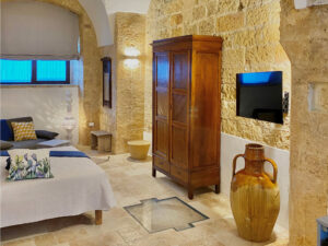 Stanza inizialmente adibita a frantoio oleario ad un solo torchio, la cui base in pietra è ancora visibile, incastonata nel pavimento; trasformata poi, alla fine del XIX secolo, in palmento per la pigiatura dell’uva. Le cisterne per la fermentazione del mosto sono visibili nella Stanza delle Presse.